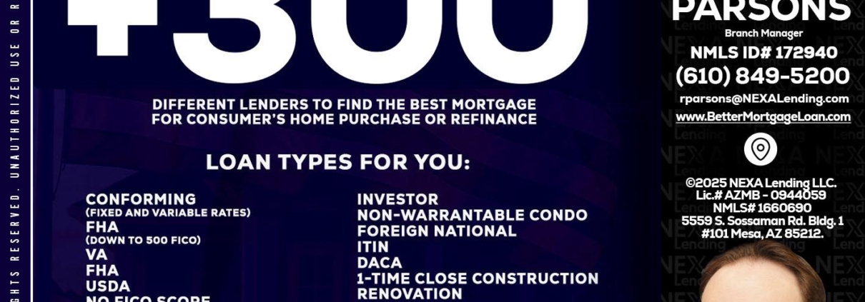 Hi, my name is Robert Parsons. I’m a Loan Officer with NEXA Lending LLC., offering personalized mortgage solutions, fast customized quotes, great rates and service with integrity.