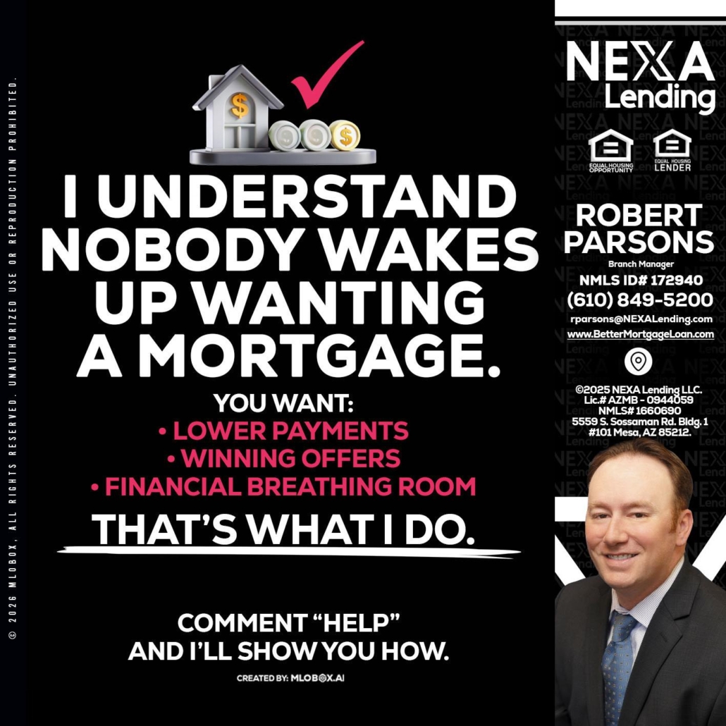 Hi, my name is Robert Parsons. I’m a Loan Officer with NEXA Lending LLC., offering personalized mortgage solutions, fast customized quotes, great rates and service with integrity.